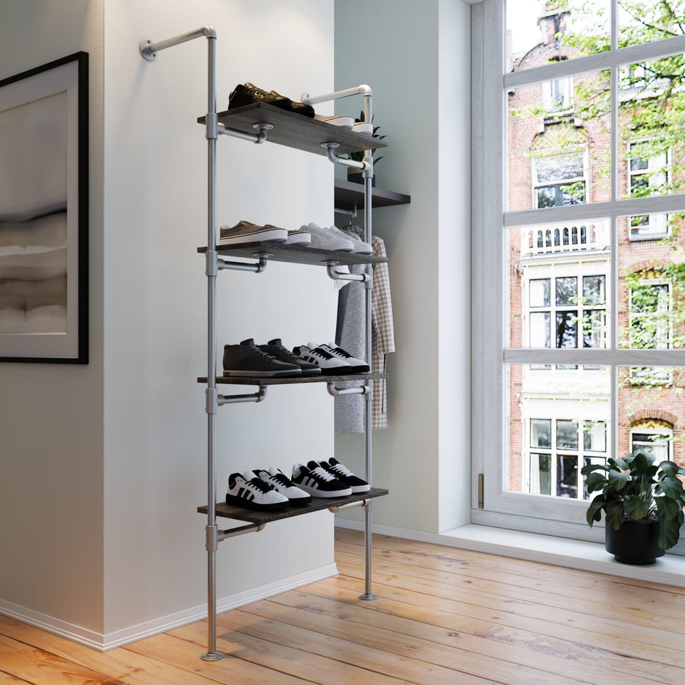 Kies tussen elegante, donkere of zilveren waterleidingen om uw individuele stijl te onderstrepen. Dit systeem kan ook uitstekend zijn met andere elementen van onze the The The The Walk-In Collection Combineer zodat u uw huis kunt ontwerpen volgens uw smaak. We raden ook aan voor een veelzijdige organisatie De walk-in Planksysteem - 4 schoenen of boeken schoenen.