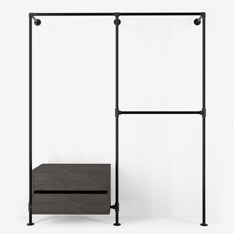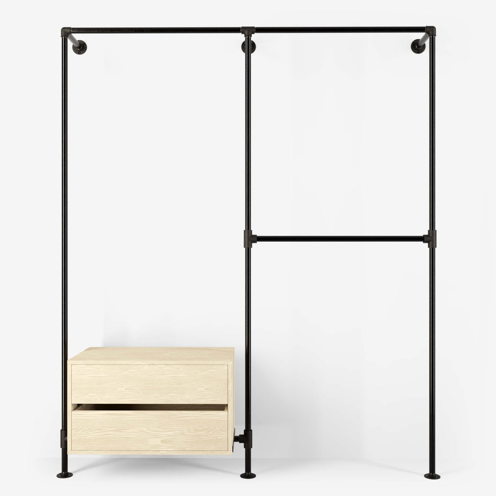 Heb je genoeg verwarrende opslagsystemen? Met onze De Walk-In Met ladenkast - (1 staaf + 1 ladekast / 2 polen) Wij bieden u een op maat gemaakte oplossing die stijl en functionaliteit perfect combineert. Bij Rackbuddy zijn we uw partner als het gaat om optimaal gebruik van elke hoek van uw kamer - ongeacht of lage dekens, rare muren of onconventionele ruimtelijke vormen.