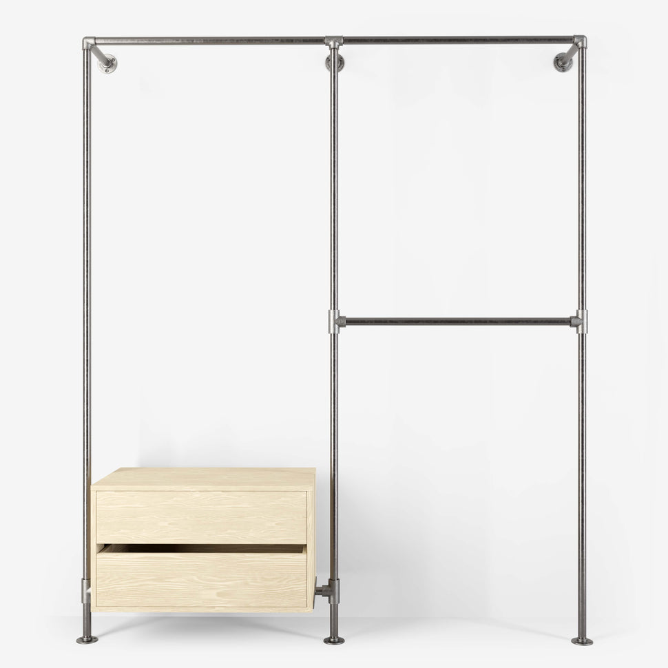 Met De Walk-In Met ladenkast - (1 staaf + 1 ladekast / 2 polen) Krijg een complete oplossing voor een fatsoenlijke, loop in garderobe: