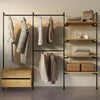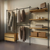 Met De Walk-In Met ladenkast - (1 staaf + 1 ladekast / 2 polen / 4 planken) Van Rackbuddy transformeert u elke garderobe in een kamer die al uw wensen vervult. De combinatie van elegante waterleidingen en warme houten oppervlakken zorgt voor een minimalistisch, Scandinavisch ontwerp dat perfect past bij moderne levende concepten.