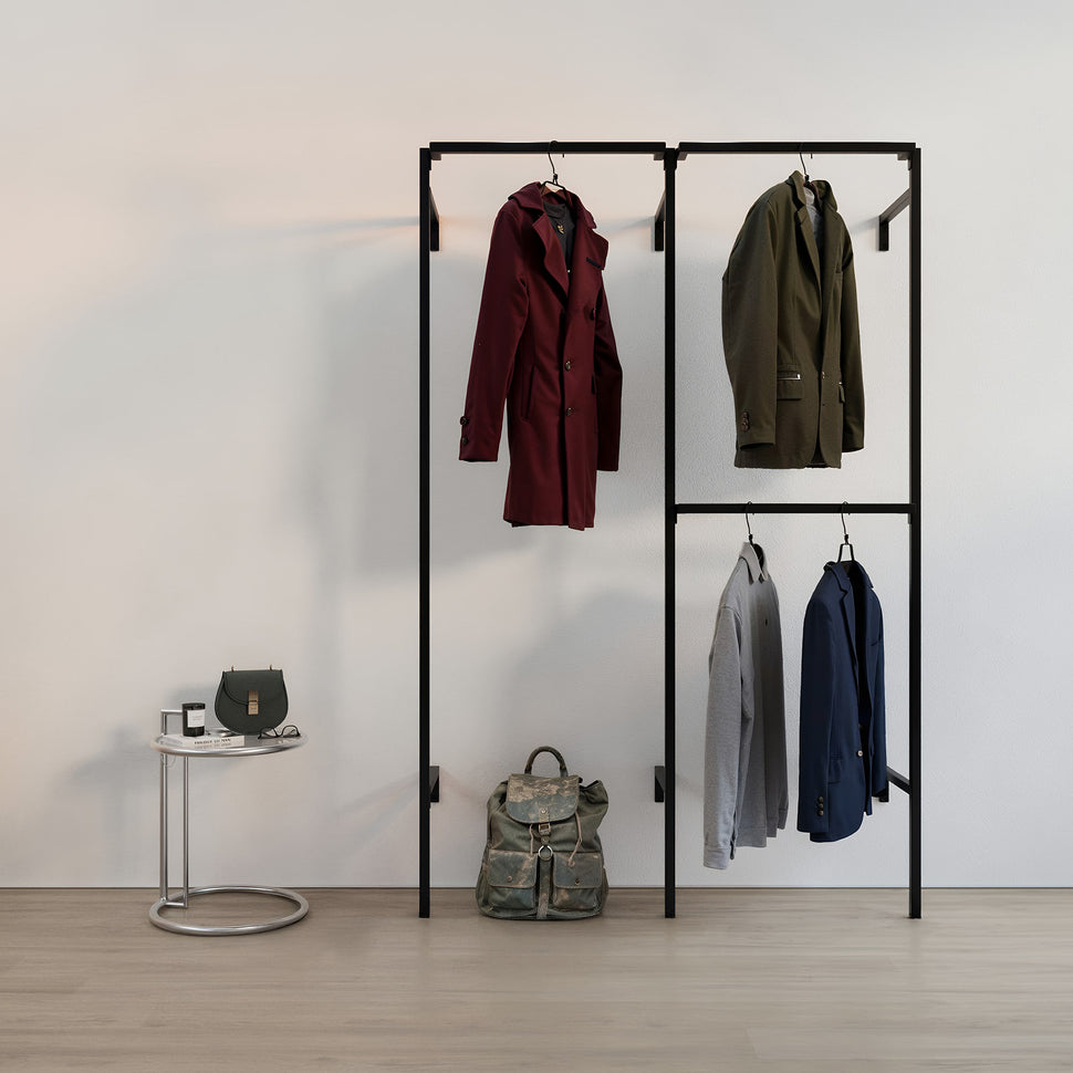 Met onze Frame Walk-In 2 rijen kledingrailsysteem creëert niet alleen bestelling, maar stelde ook een verklaring in termen van Scandinavisch ontwerp en duurzame kwaliteit. Bij Rackbuddy DE zijn we er trots op u een oplossing aan te bieden die uw ruimte uitstrekt terwijl u uw persoonlijke stijl onderstreept.