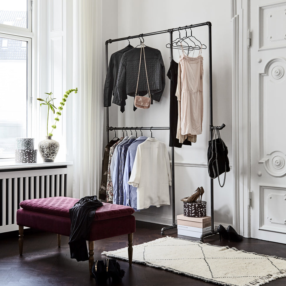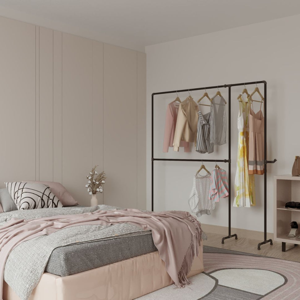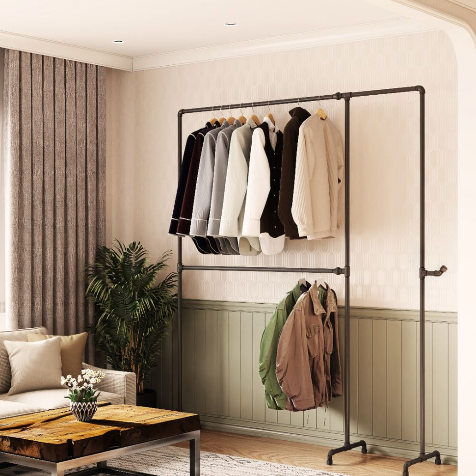 Wild Bill Elliot boeit met zijn opvallende, dubbele storey -systeem, dat speciaal is ontwikkeld voor iedereen die zijn kleding stijlvol en ruimte wil bewaren. Gemaakt van robuuste ijzeren pijpen, combineert het moderne esthetiek met duurzaamheid. Het industriële ontwerp zorgt ervoor dat de volgorde zelfs in kleinere kamers wordt gecreëerd - zonder een compromis te sluiten bij de look.
