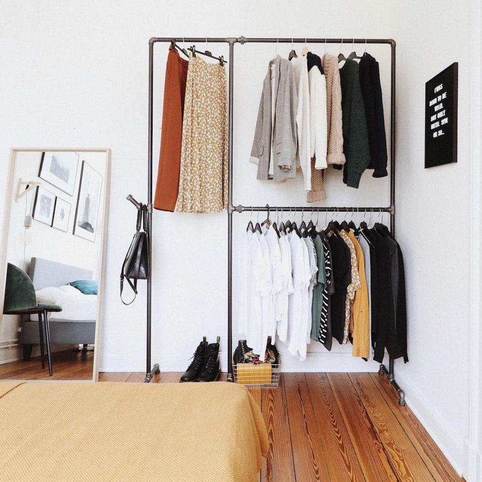 Heb je het gevoel dat je kleren je kleren overal in de ruimte nemen? Met Rackbuddy Wild Bill Elliot - Dubbele kledingrail in chique ontwerp Wij bieden u een slim antwoord op uw retentieproblemen. Bij Rackbuddy weten we hoe waardevol elke vierkante meter is - en hebben onszelf de taak gezet om hun kamers te strekken. Onze industrieel geïnspireerde kledingrekken zijn niet alleen functioneel, maar hebben ook een echte stilistische verklaring ingesteld.