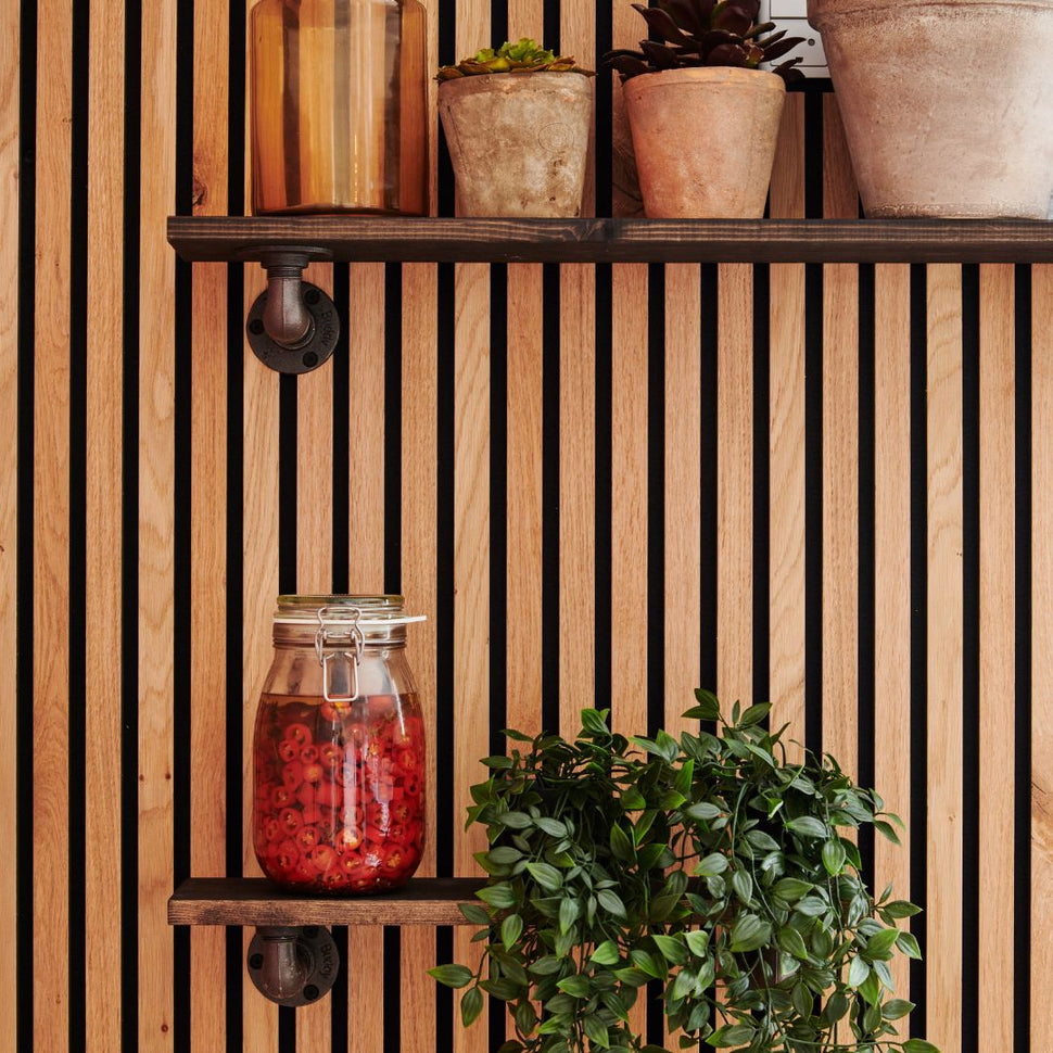Onze plank combineert industriële charme met moderne elegantie. Je hebt de keuze tussen verschillende oppervlakken: lichte of donkere kaken en fineergebieden in klassieke of gerookte kleurentinten. Bovendien is de optie open voor selecteren van beugels gemaakt van donker of zilveren ijzer - volgens uw persoonlijke stijl.