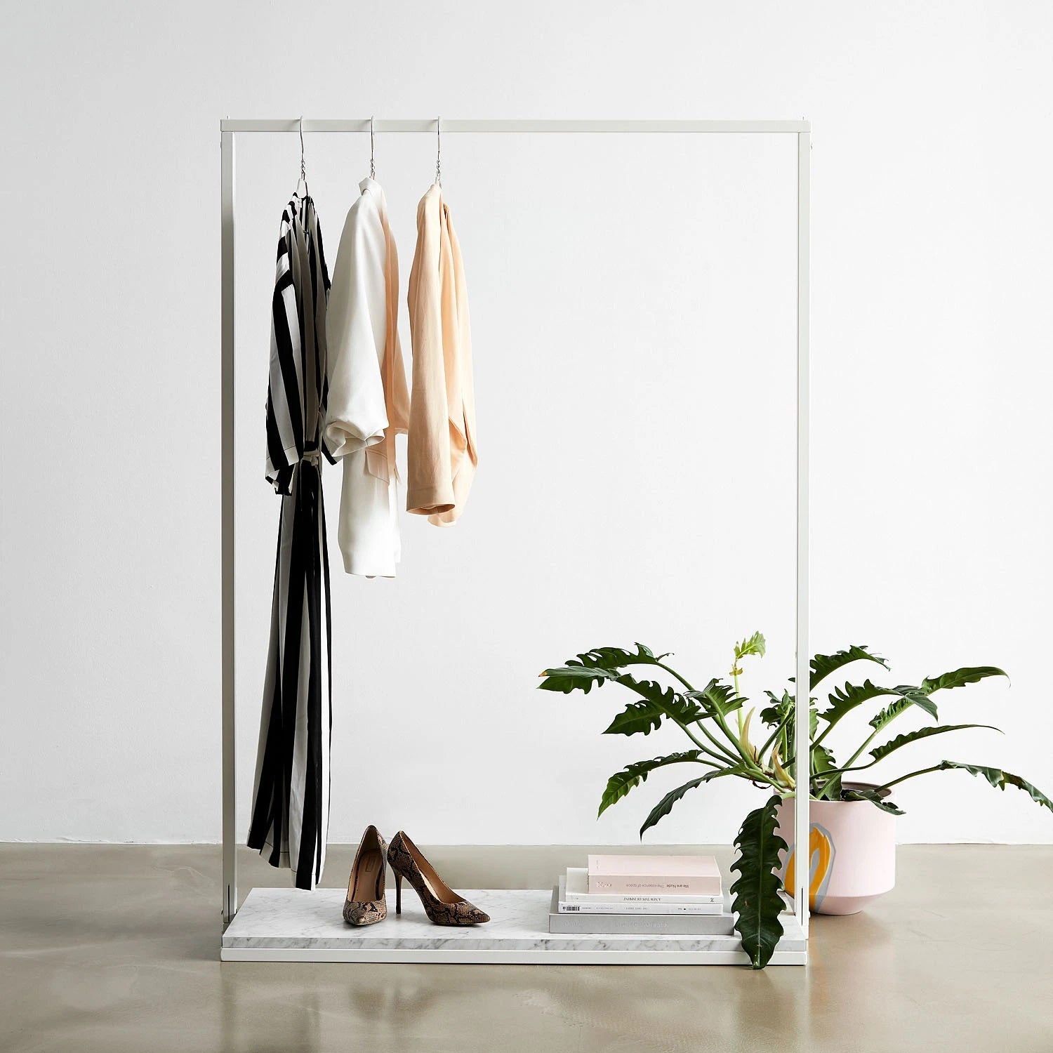 - Frame Georgia: Dit stabiele metalen kledingrek zal duidelijk de focus in een garderobe zijn en (bijna) (bijna) je hele wasbalk voor je dragen