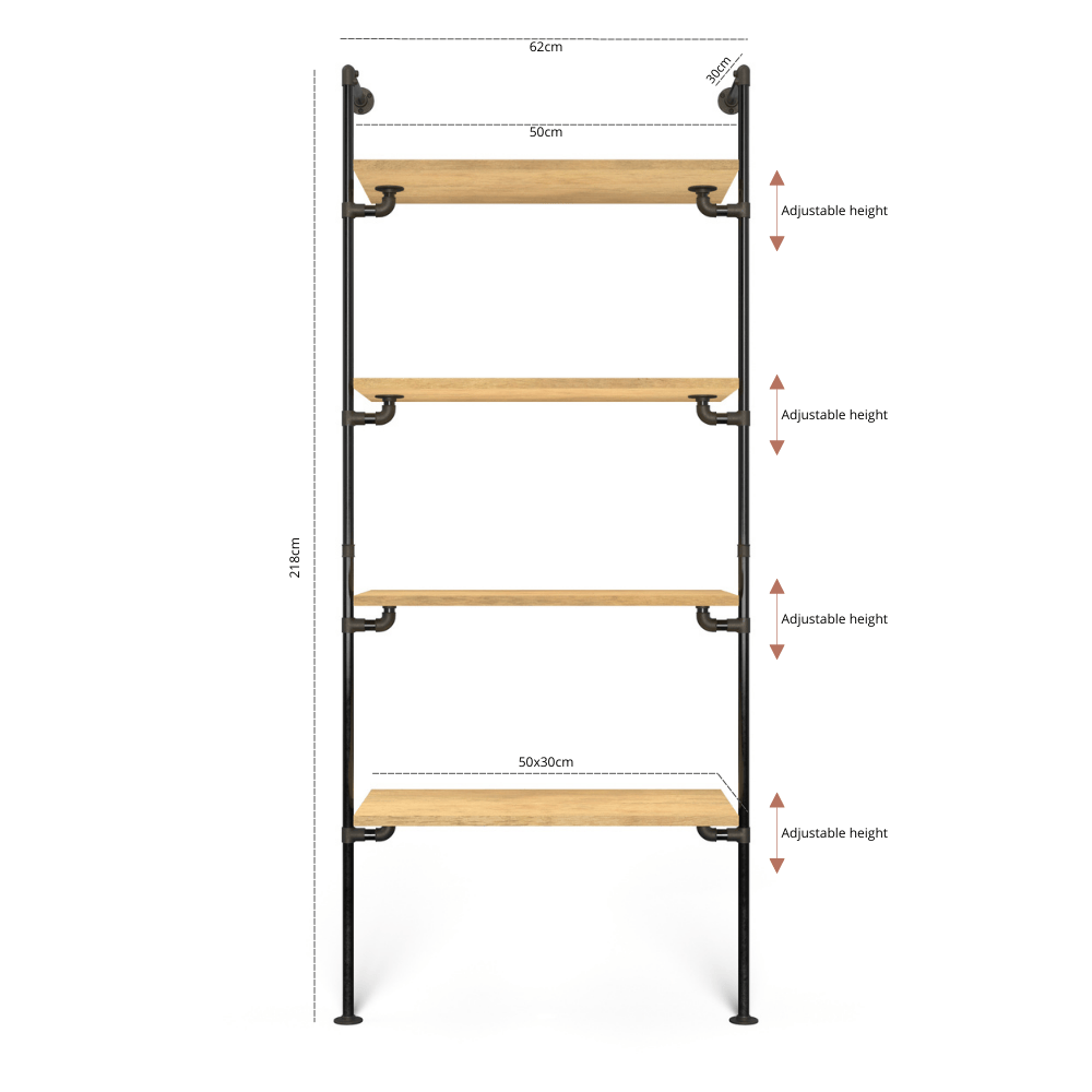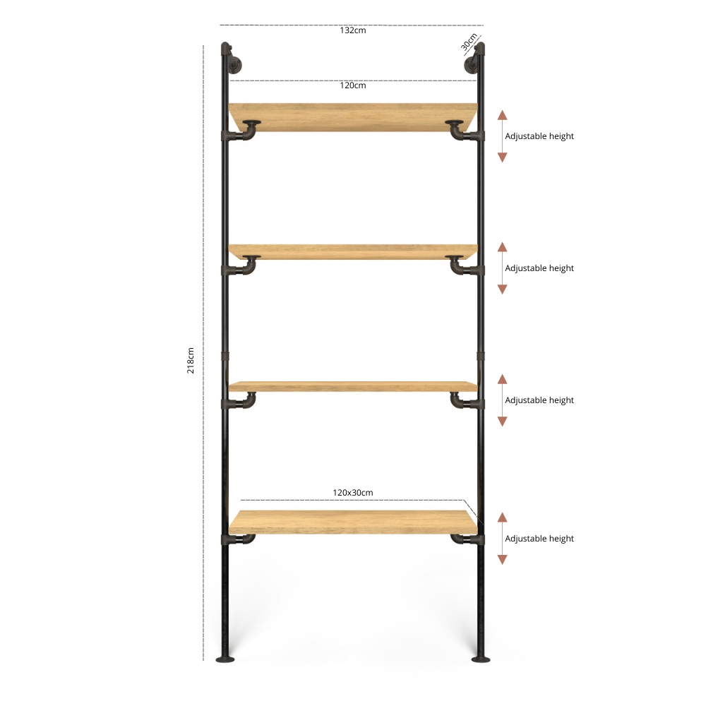 De planken zijn in hoogte verstelbaar.