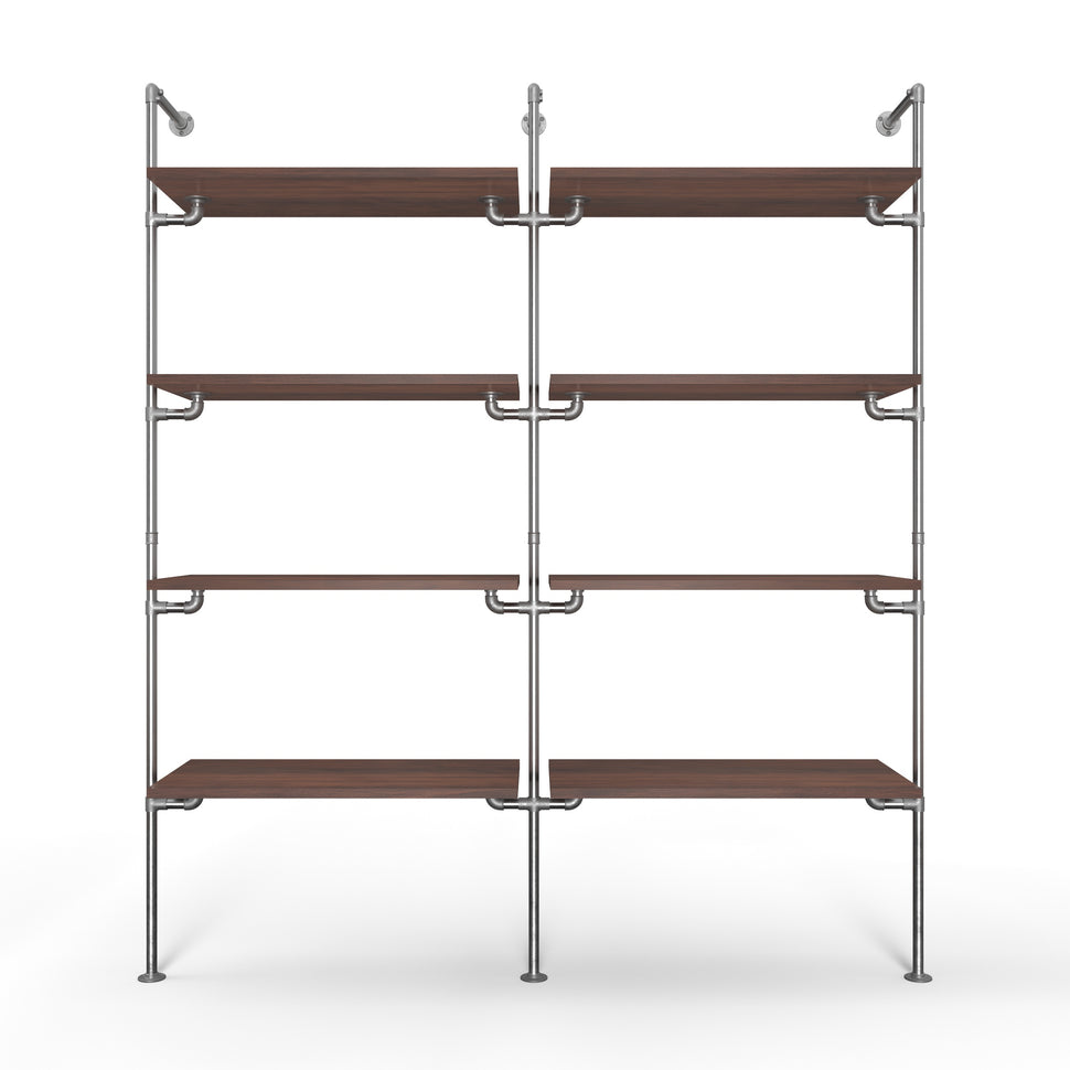 Gebruik het optimale gebruik met de Walk-In 2 rijen kledingrailsysteem - (4 planken / 4 planken)