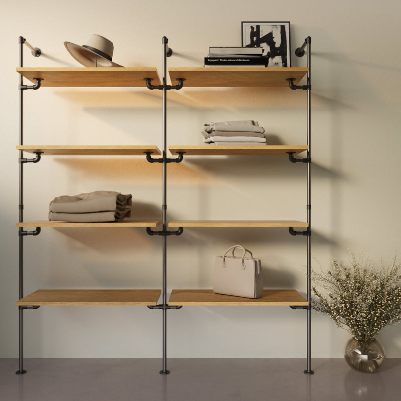 Bij Rackbuddy weten we dat elk huis uniek is. Ons doel is om u een individuele en flexibele oplossing te bieden die niets te wensen overlaat. Combineer de Walk-In 2 rijen kledingrailsysteem - (4 planken / 4 planken) met Andere modellen uit onze collectieom uw persoonlijke ruimte te creëren - of als Garderobe in de slaapkamer Of als een elegante boekenplank in de woonkamer kijkt.