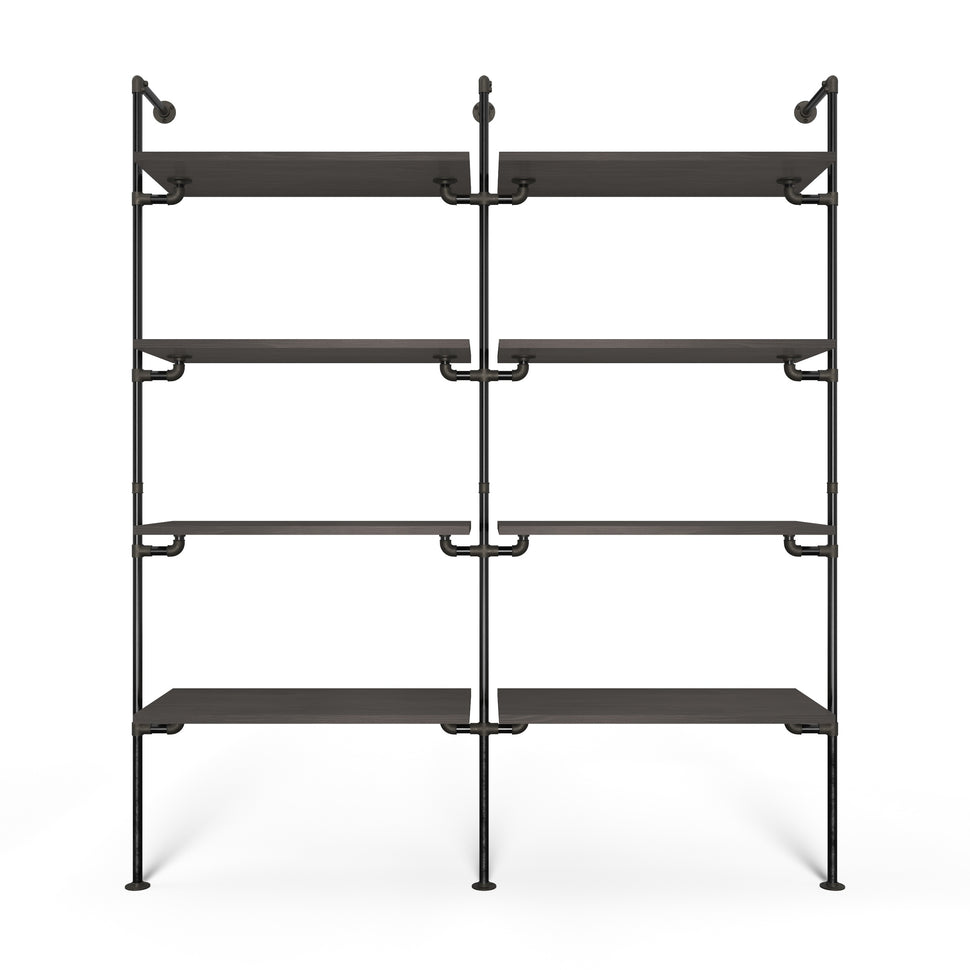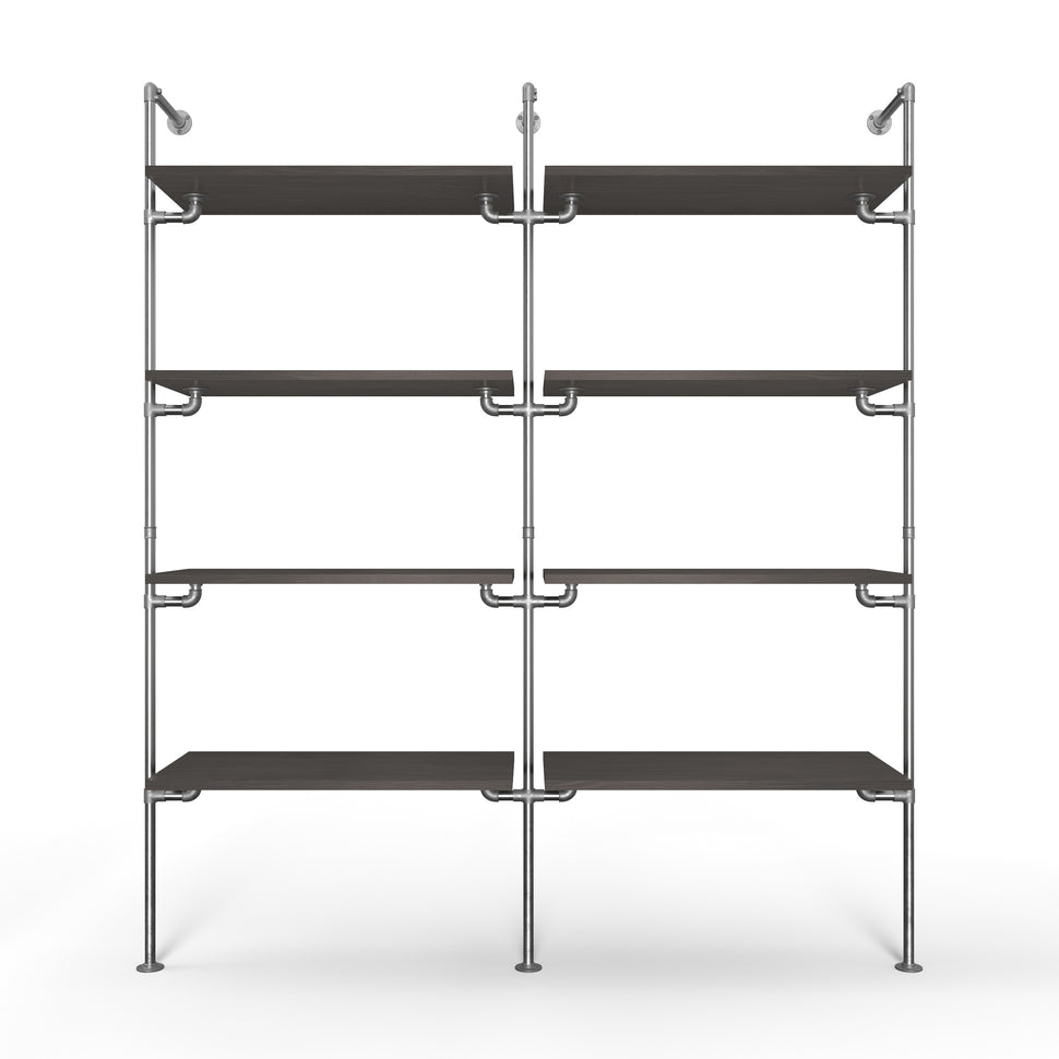 Bij Rackbuddy weten we dat elk huis uniek is. Ons doel is om u een individuele en flexibele oplossing te bieden die niets te wensen overlaat. Combineer de Walk-In 2 rijen kledingrailsysteem - (4 planken / 4 planken) met Andere modellen uit onze collectieom uw persoonlijke ruimte te creëren - of als Garderobe in de slaapkamer Of als een elegante boekenplank in de woonkamer kijkt.