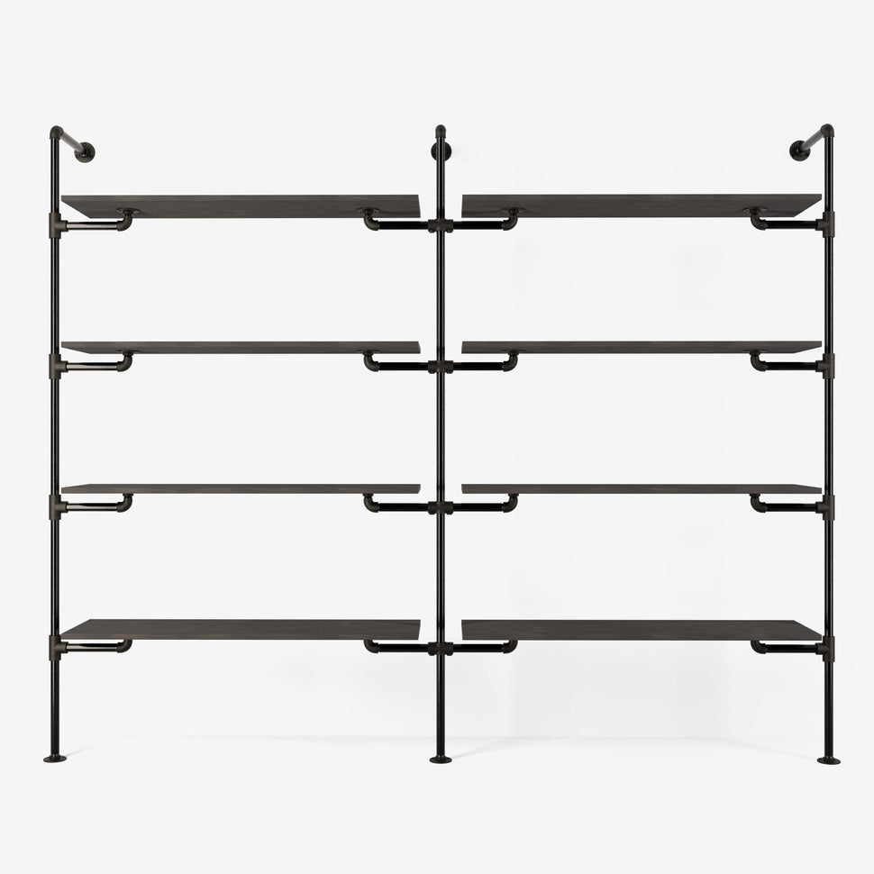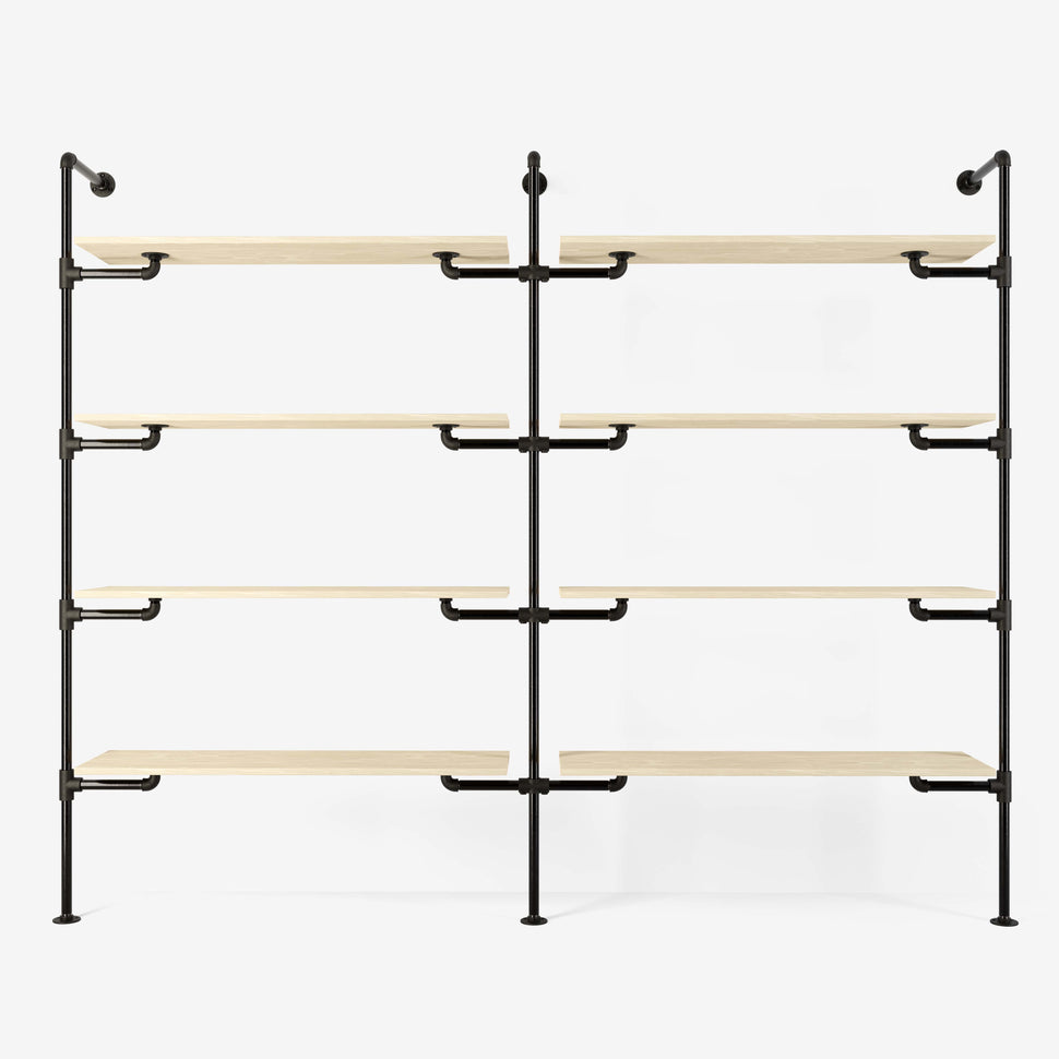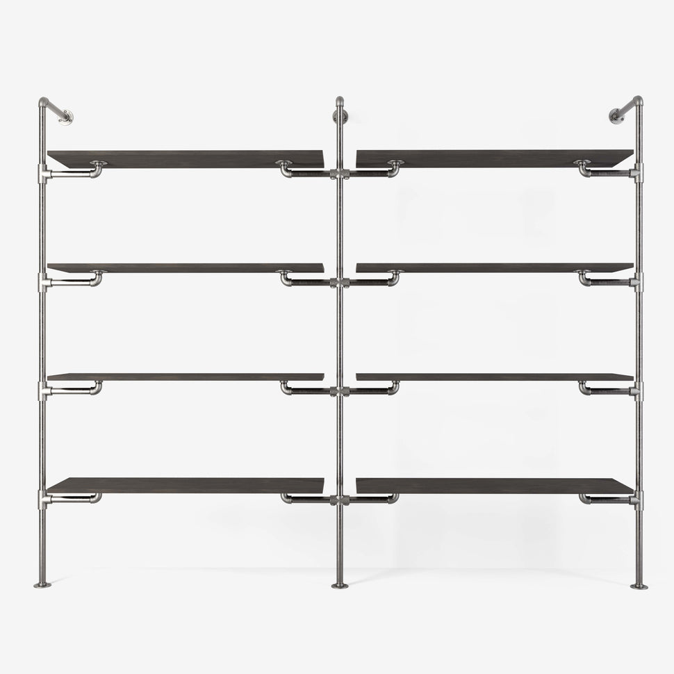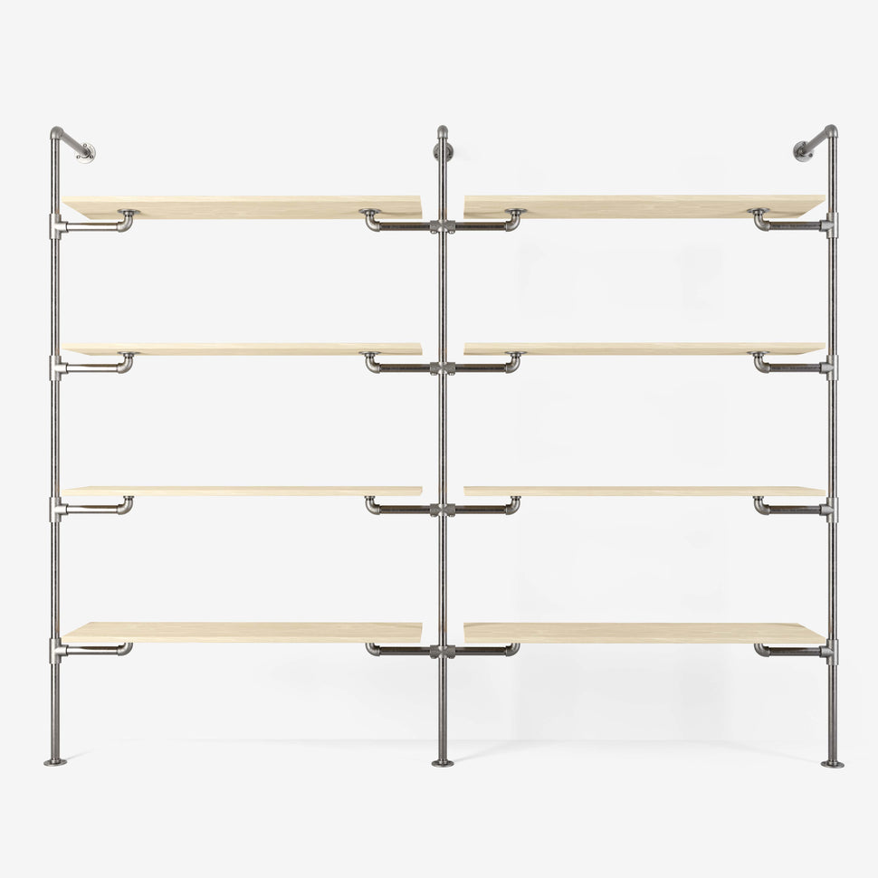 Gebruik het optimale gebruik met de Walk-In 2 rijen kledingrailsysteem - (4 planken / 4 planken)