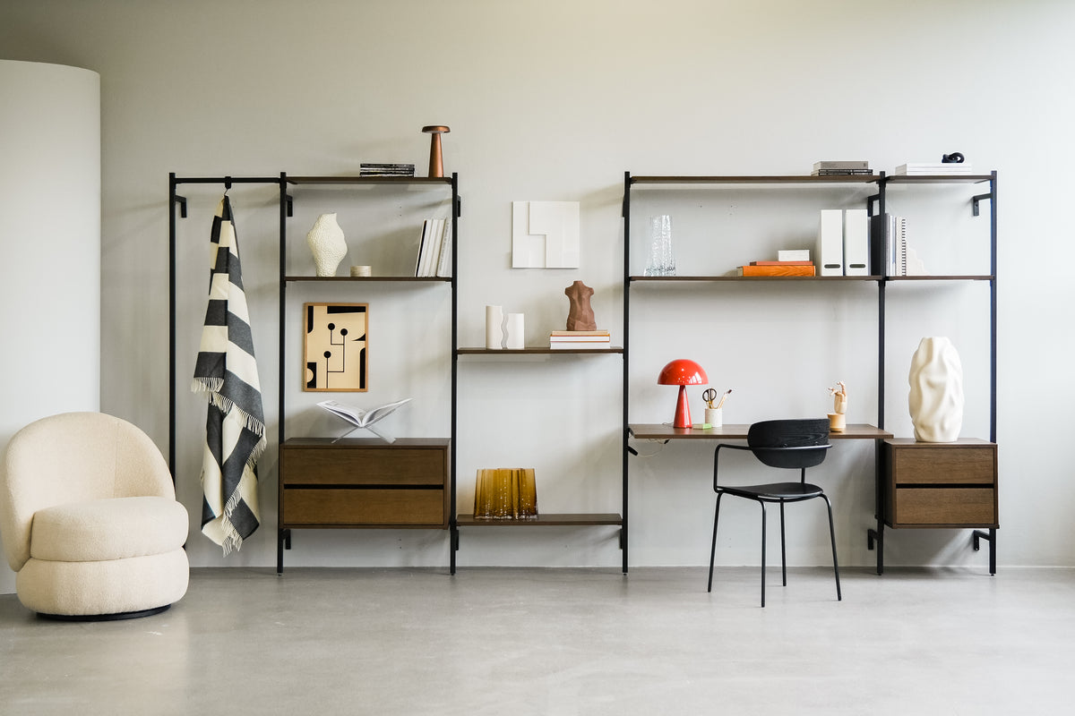Onze kleinste Frame-T oplossing heeft het allemaal. Van planken tot kledingrails en alles daartussenin - de Frame Wall-geassembleerde series zijn misschien klein in de gestalte, maar het is enorm in gebruik!